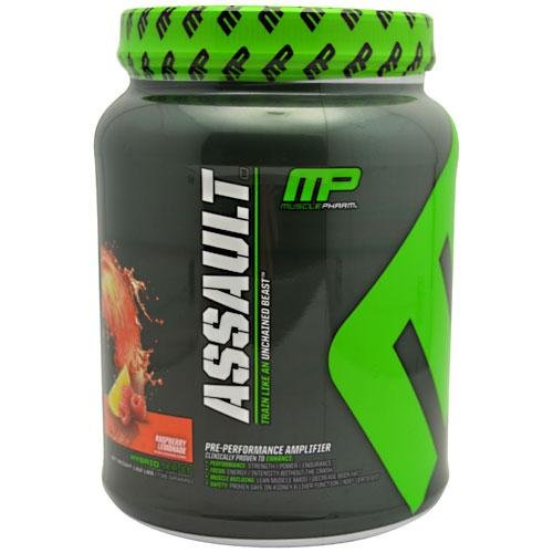 Demand A Clinically Proven Pre-Workout FormulaMusclePharm Assault is the most researched pre-workout out there because we they a company of athletes. They want to feed their bodies the best and pass their expertise on to other athletes. Multiple studies prove that 1 serving helps increase strength, aerobic and anerobic performance. Assault meets NSF and Informed Choice product standards and is safe for kidney and liver function, even in chronic use cases.Superior Ingredients, Super ResultsCON-CRET: Assault is the only pre-workout formula to use this clinically-proven and patented version of creatine.ASTRAGIN: Patented ginseng extract, lowers blood glucose levels, increases creatine/arganine absorption and ATP production.CINNULIN: Heightens absorption of creatine, arginine, vitamins and other ingredients launch directly into muscles. (Both workhorse substances also burn body fat while adding muscle, for a leaner, fuller physique).BCAAS: "Concentrated" formulas hit hard, then leave you hanging. The patent pending ratio promotes stronger recovery and lean muscle mass.NO 1,3-DIMETHYLAMINE: Forget that quick high, crashes always follow. You need nutrients, NOT some stimulant like 1,3 Dim.THE COMPLETE NUTRIENT PACKAGE: Hardcore athletes who take a full scoop of Assault get the benefits of 4g of Beta-Alanine, 5g of creatine from the superior forms of creatine found in Creapure Creatine (over 3g) and Con-Crete, 1.5g Citrulline Malate, 6g BCAA, carbohydrates, vitamins, and our High Performance Energy & Intensity Amplifier blend.Stay Focused and Blasting From The Start To The Very Last Set. Prepare To Assault The Gym.